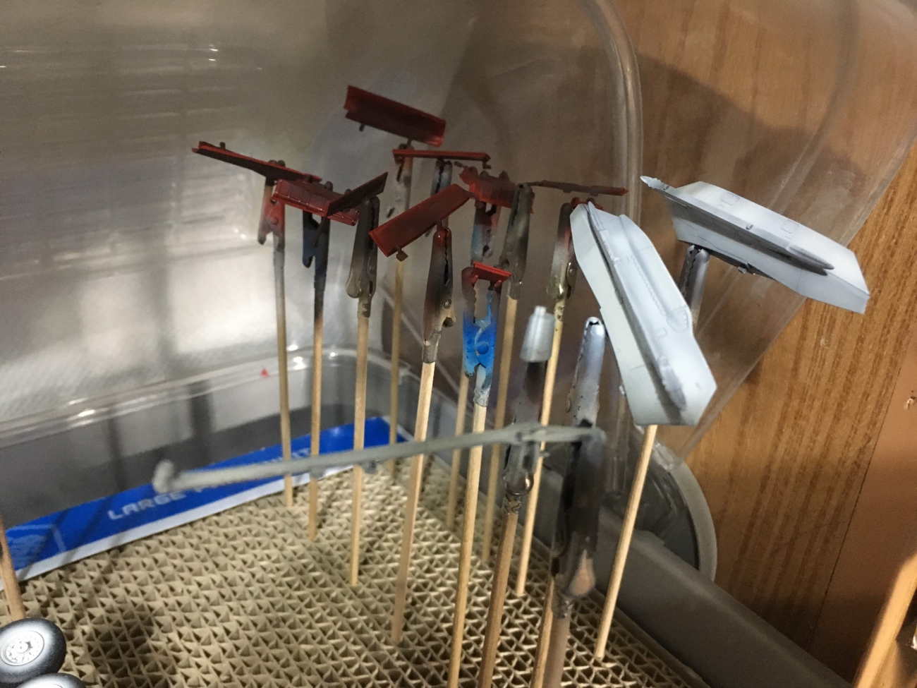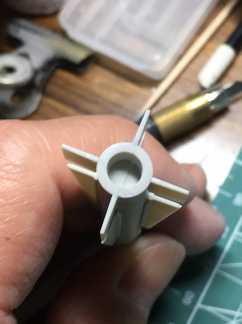 JUGEMテーマ:ラジコン・模型 いらっしゃいませ、『る〜む335』です 盆の休みも終わり2019年の夏後半が始まりました。 一寸時間がかかっていますがウェポンの塗装に入りました。 フェニックスの後部どうしても消せないパーティングラインが残ります。 そ・こ・で・ コトブキヤ丸モールド4.5mmを貼り込みました。 綺麗に消えて、ディティールアップもできました。 燃料タンクとスパローここに映っていませんがサイドワインダーは基本塗装まで進んでいます。 基本塗装前...