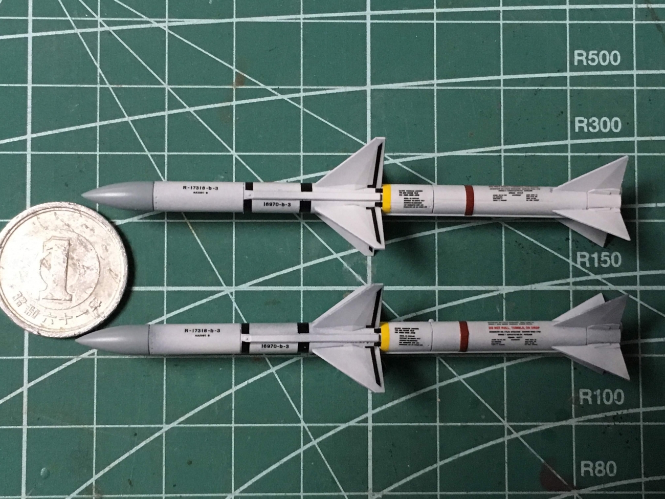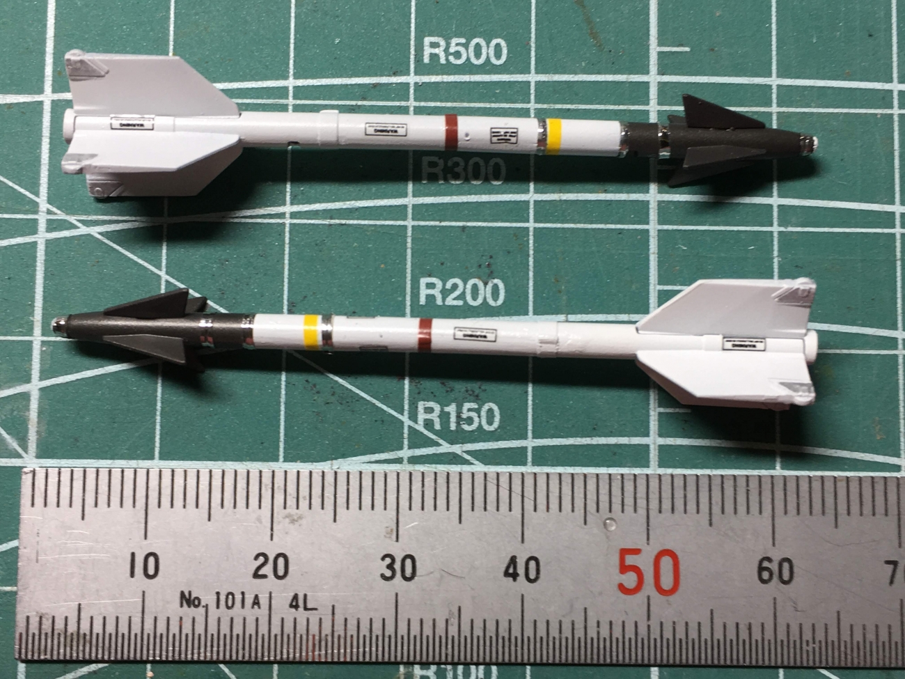 いらっしゃいませ、『る〜む335』です F-14Aトムキャットのウェポンが揃いましたので 改めてアップします AIM-9G/H Sidewinder 昨日塗装の間違いがあったので塗り直したサイドワインダー 先端部分をグロスのブラックで塗っていましたが、ガンメタが正解だったようで塗り直しました デカールを貼るにあたってシルバーの塗装指示の部分は ハセガワのミラーフィニッシュを貼りました。 AIM-7E Sparrow 改めてスパロー 最終スミ入れでどう変わるかですね。 AIM-54A Phoeni...