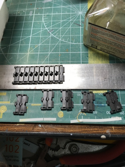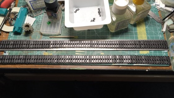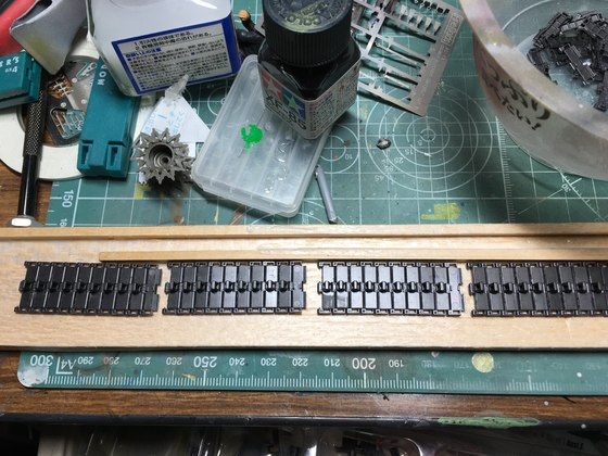 JUGEMテーマ:ラジコン・模型 らっしゃいませ、『る〜む335』です 足回りまで組めたのでいよいよ履帯です 10コマずつ組んで、最後に一気に組み上げる方法を取りました。 段取りが悪く、片側だけですが、つながりました いままで、組んだ組み立て式可動履帯のなかでは、一番精度がいいかも!! きっちり前処理をしておくとカチカチはまってグリグリ動きます。 さ〜残りも繋いでしまおう ********************************************** にほんブログ村...