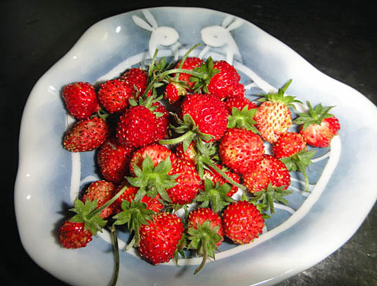 JUGEMテーマ:趣味の園芸 窓先で栽培している、アルパインストロベリーも、実が沢山できてきたので朝採取しました。 「よつぼし」という苺にも中ぐらいの実が赤くなっていたので一粒採取。