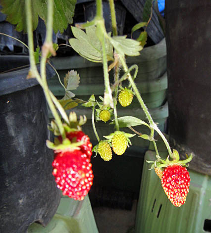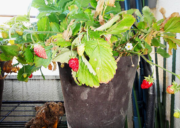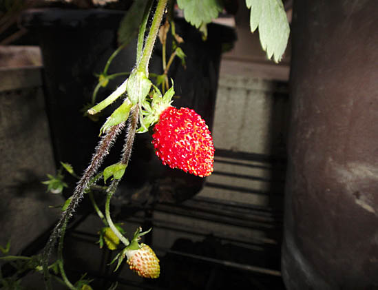 JUGEMテーマ:趣味の園芸 早朝、窓先で栽培しているアルパインストロベリーの実が、また赤くなっていたので数個採取。
