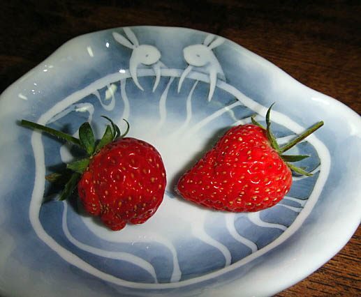 JUGEMテーマ:趣味の園芸 早朝、窓先で栽培している苺(よつぼし)の実が赤くなっていたので採取しました。