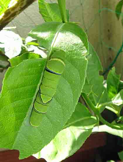 JUGEMテーマ:趣味の園芸 窓先で育てている、仏手柑の葉に以前、アゲハ蝶の幼虫が発生して駆除していましたが、しばらく家を留守にした間に、どでかい幼虫が葉をモシャモシャ食べていました。 Σ Σ('Д`lll) !! 葉が全て食べられないよう、幼虫を駆除しました。 大きいのから、小さいものまで沢山いました。 ('Д`lll) !!