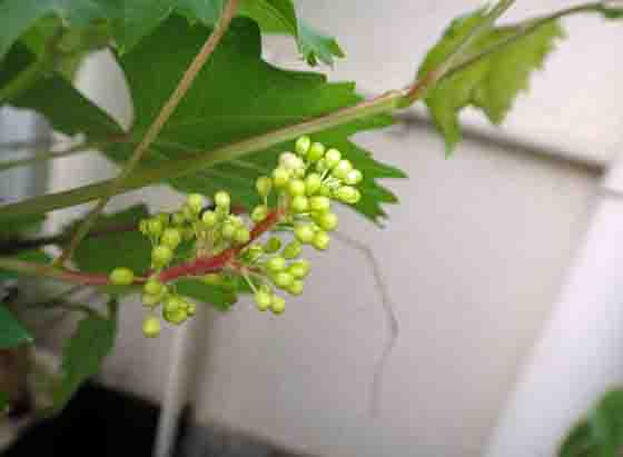 JUGEMテーマ:趣味の園芸 窓先で栽培している、3才山ぶどうの鉢にいつのまにか、蕾ができていました。 確か、4月から6月頃が開花期間だと思いましたが、台風のせいで違う時期に蕾ができたのでしょうか。 野生の山ぶどうの種から発芽させた苗も最近、葉が枯れてきていたので、ポッドの土を調べてみたら水はけが悪く根腐れしていたようです。 至急、赤玉土小と腐葉土を8対2の割合で混ぜ合わせ、ポッドの土の入れ替えを行いました。
