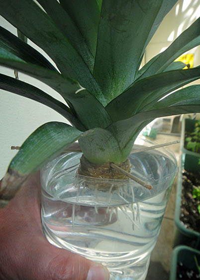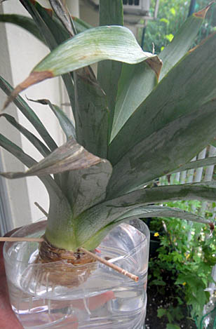 JUGEMテーマ:趣味の園芸 水耕栽培していた、パインも根がすごく長くなってきたので、今日鉢に植え替えました。 夜香木(ナイトジャスミン)も暑いせいか、枝がすごく伸びてきたので剪定して、剪定した枝を挿し木用に発根液に浸けていおきました。