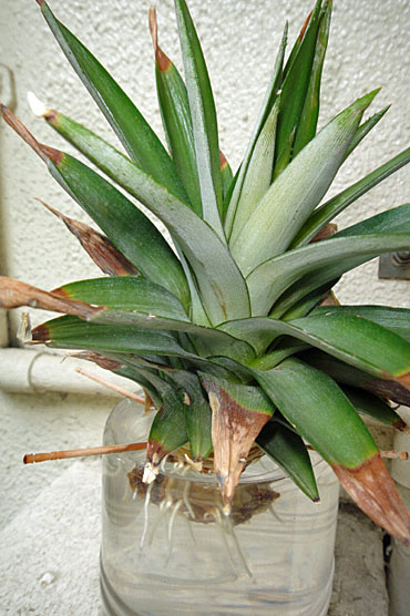 JUGEMテーマ:趣味の園芸 食べ終わったパインのクローバーを水に浸けて5日目に見てみたらかなり、白いヒゲのような根が2センチぐらい伸びてきました。 あと、1センチ位伸びたら鹿沼土と腐葉土を配合したものを入れた鉢に移し替えようと思います。