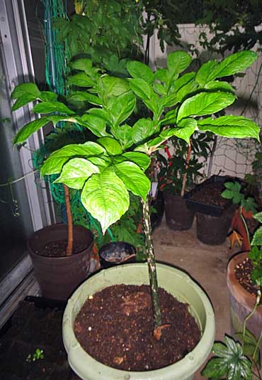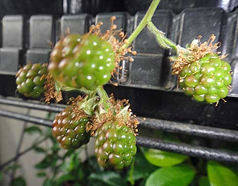 JUGEMテーマ:趣味の園芸 今朝、窓先のポットで育てているブラックベリーに青い実が付いているのに気が付きました。 もう少しで、黒い果実がいただけます。 ここのところ、梅雨の時期なのにかなり高温の天候だったせいか、中々発芽しなかった羅漢果の種もいよいよ芽が地面から出現。 こちらの枝からニヨッキの物体は、バナーネという大きな実がなるイチジクの花です。 花でありながら、甘いフルーティな香りが既に漂っている実です。 こちらの品種は...