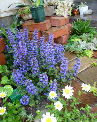 JUGEMテーマ:ガーデニング アジュガの花が咲くと一気に夢の庭になります。 クリセンスマムの白と黄色もぴったりです。 この青は光り輝く青ですよ。 ランナーで増えるので気楽に増やせます。 光が少ない庭で立派に花を咲かせます。 ノースポールの名前がなかなか出てこなかった。 一年草だけれど、毎年こぼれた種で咲くお得な花。 ...