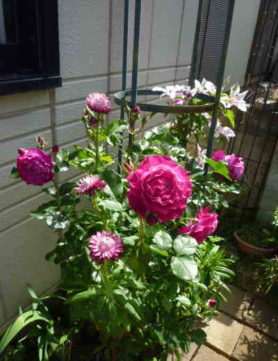 JUGEMテーマ:ガーデニング バラがどんどん咲き始めました。 これはワイルドブルーヨンダーです。 花びらのフリフリが今一番きれいに咲いて見えます。 ピンクに青が入っているので名前にブルーと入っているのでしょうね。 バラの根元から帝王貝細工が伸びて咲いています。 バラと同じ色で、とぼけて一体化しています。 冬を越した帝王貝細工は早...
