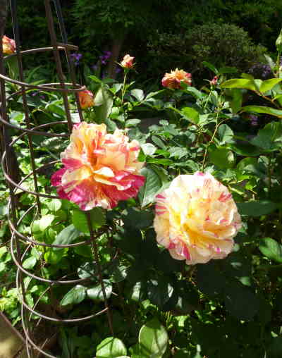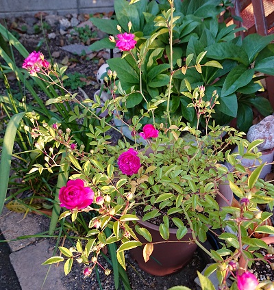 JUGEMテーマ:ガーデニング 沖縄、梅雨入りしたそうで・・・・。 ため息しか出んわぁ。 またあのジメッとした日々が続くのね・・・・。 せっかく咲いたバラも当分、見納めかな。 イーハトーブの香。 複色で見ていて飽きない楽しいバラ。 クロードモネが咲き始めました。 何だか今年は小さい? 小輪のような可愛らしさ。 鉢が小さいのかなぁ〜。 冬に植え替えはしたんだけど・・・・。 犬友さんから剪定枝を...