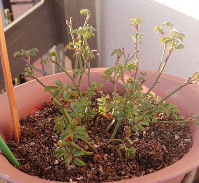 JUGEMテーマ:ガーデニング 私、ミニバラって二年目を迎えさせたことがありません(;^ω^) でも今年はチャレンジ! 昨年、冬剪定をしたスイートチャリオットですが、 新芽がこんなに(≧▽≦) 今年もモリモリ咲いてくれそうな予感♪ でも、育種家の方いわく、ミニバラはめっちゃ刈り込まないと良い枝が出てこないそうです。 細い枝には花がほとんどつかないから、どんどん先細りになって枯れてしまうのだとか。 まず、根っこをちゃんと太くするために、太い枝のところま...