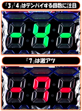 スパイダー変動システム ■7セグの数字に注目しよう。演出変動回数が多いほど信頼度もアップ。演出変動回数が「3」「4」の時はテンパイする回数によって期待度が激変する。演出変動回数が「7」ならば激アツだ。 ゲームの流れ ■図柄大当たりとなったら右打ちでラウンドを消化しよう。大当たり終了後は次回継続までのRUSHに突入しなければ即左打ちでの遊技となる。初当たりで電サポ状態になるのは全体の10%しかないので、その後の潜伏「SPIDER ZONE」からの大当たりに期待しよう。 「SPIDER ZONE」で大当たりすれば5...