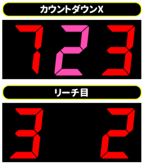 保留変化予告 ■先読みの定番となる保留変化予告に注目。「キャラ保留変化」はタイマーや風船などのバージョンがある。 また、ほかにも「ガラポン保留変化予告」や「落雷保留変化予告」もあり、目が離せない。珍しい変化に期待しよう。赤系の絡みがアツい。 同色図柄停止予告 ■図柄停止時に同色図柄が止まると連続予告やスーパーリーチ発展のチャンスとなる。停止図柄が赤だとよりチャンスとなるぞ。 カウントダウン予告 ■デジタルアクションと図柄変動に合わせて画面にカウントダウンが発生する。最終カウントダウン...
