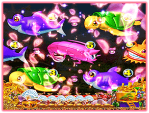 リーチ連続予告 ■先読みアクションとして、リーチが連続するほどチャンスとなる。3回でスーパーリーチ! 4回で魚群発生! そして5回続けは大大チャンス!! 保留変化予告 ■スタートに玉が入賞すると発生する定番の先読み演出。変化したアイテムによって次の展開が示唆される。泡ならスーパー!? 小魚ならば魚群発生!? ほかにもいろいろと変化するぞ。 ラッキーエイトチャッカー ■通常時から保留が8個まで貯まる保留機能が魅力的。8個まで到達すると「わくわく一発タイム」「あっぱれ魚群祭り」に突入する可能性がある。...