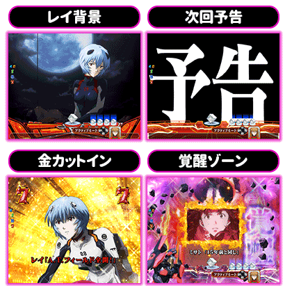 4大ポイント ■大当たりに結びつきやすい4つの激アツポイントをしっかり把握しよう。この4つのどれかが絡まないと厳しい!と言ってもいいかも。 まずはおなじみ「レイ背景」。リーチ直後に出てくるレイは今までどおり激アツだ。「次回予告」はエヴァの定番中の定番。このアクションがデジパチ演出の歴史を作ったと言っても過言ではない。激アツスーパーの発展が約束される。 「金カットイン」はリーチ終盤の最後の見せどころ。ここで金が出るかどうかがカギなのだ。先読みとなる特殊ゾーンの「覚醒ゾーン」は突入時点で激アツ。...