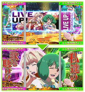 ライブアップ連続予告 ■連続予告となるこのアクションは「ライブアップ図柄」停止で発生する。図柄停止時やノーマルリーチ中に停止すると突入となり、3連続すればチャンスとなる。とりあえず2回を越えることを祈るべし。 君は誰とキスをする予告 ■ステップアップ予告で、最高4段階まで進行する。キャラの組み合わせとエフェクトの色が発展するかどうかのポイントになる。基本的にキャラは発生したステージに連動しているが「ミシェル&クラン」などのレアパターンが出ればチャンスだ。4段階までいけばとりあえずチャンス...