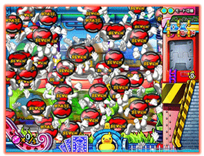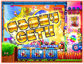 ゲームのポイント ■中央のスタートチャッカーを玉が通過するとデジテル回転が開始される。まずは上段に3つのコインが揃うとチャンス。そして下段にコインがテンパイすればリーチだ。下段のコインが揃えば大当たり。 ナビに従って右打ち開始。後は電チューの連動で玉を獲得すればいい。右打ち中でもスタート機能があるので、ラウンド消化中に自力連チャンするラッキーが味わえることもあるぞ。そのまま打ち続ければオッケーだ。これは「まる得当たり」と呼ばれていて、サブ液晶に$袋が出るからすぐにわかるぞ。コンテナがなく...
