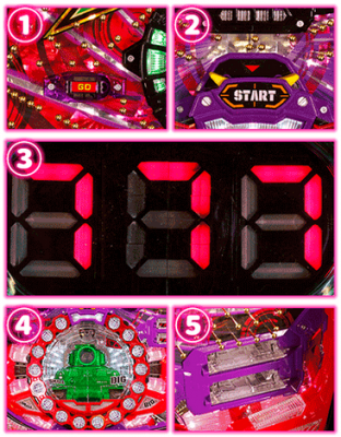 シンボルカウンターチャレンジ ■盤面の役物を利用した特殊で独特なアクションが楽しめる。「シンボルカウンター図柄」停止、または「エナジーポインター」がMAXになればゲーム開始となる。その後「シンボルカウンターチャレンジ」が発生。止まった図柄で期待度が変化する。「H・H」はリーチ発生、「7・7」なら大チャンスとなる。 7セグでリーチの期待度を判定するNEWシステムがまた面白い。「7セグチャレンジ」「ピュイピュイチャンス」「キカイダービンゴ」と多彩なアクションが楽しめるのだ。 保留連続予告 ■液晶下部に...