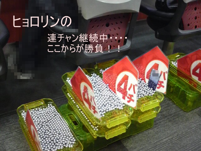 どうも!どうも!ヒョロリンだよ〜〜〜 忘れていた「cr牙狼ファイナル」台でもヒョロリン写真です。 まだこの時は調子が良かったのか? 1500円で当たりを引きあて 連チャンが続き・・・・・ この出玉数です。 最初の5箱は簡単に積めますが・・・・ ココからが、楽しくなってくる。 気付けば下の写真はこんな状態・・・・・・ では、出玉数結果はこちら この時は、早い時間で当たりを引けたのでラッキーでした。 クリックしてね!! JUGEMテーマ:パチンコ