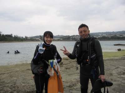 JUGEMテーマ:ダイビング 天気: くもり気温: 15℃ 水温: 19℃風向: 北西 波高: 5〜6mスーツ 冬用いや〜今日は北風が非常に強く寒い一日となりました(;O;)講習場の奥武島でも、「寒い〜!」という言葉が飛び交ってました・・そんな今日はリピーターのKさんのご紹介で、元気なSちゃんがライセンス取得に来てくれましたよ(*^^)v陸上は辛かったですが・・・初めての水中世界に感動してくれましたSちゃん寒い中、水中や水面でのスキル練習をとっても頑張ってくれました!まさに今日は修行でしたね・・・明日は...