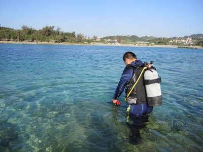 JUGEMテーマ:ダイビング 天気: くもり気温: 18℃ 水温:22℃風向: 北西 波高:4mスーツ 5mmフルスーツ+フードベスト今日の沖縄は北西の風が10m近く吹き、海も大荒れでとても寒い一日となりました。そんな中、関西からYさんがOWライセンス取得に来てくれました(*^^)v僕は今日は「寒いから大変だな〜」と思いながらYさんと話してると、「12月に海に入るので覚悟してきました!」とYさん!その言葉を聞いて今日は二人で修行のつもりで頑張ってきました・・・(汗)それでも実際に海に入ると、「思...