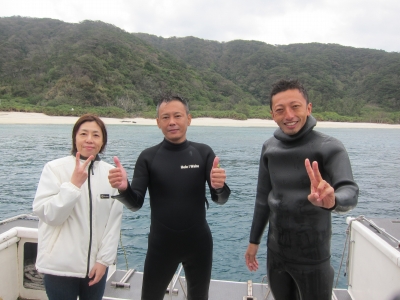 JUGEMテーマ:ダイビング 天気: 晴れ 気温: 18℃ 水温: 23℃風向: 北東 波高: 2,5mスーツ 5mmフルスーツ+フードベスト今日は海況もかなり良くなり、慶良間で楽しく潜ってきました。ポイント トウマNo.1 ドラゴンレディー アリガ―南今日は太陽がガっつり出ててポカポカの陽気でした。。。1本目はヤシャハゼやモンハナシャコ、慶良間ハナダイ、ハダカハオコゼ等2本目はジョーフィッシュに突き刺さりました。そして季節もの・・・砂地をゲレンデに見立ててスノーボード!!上手に滑ってますね...