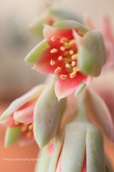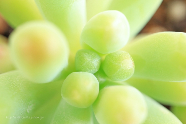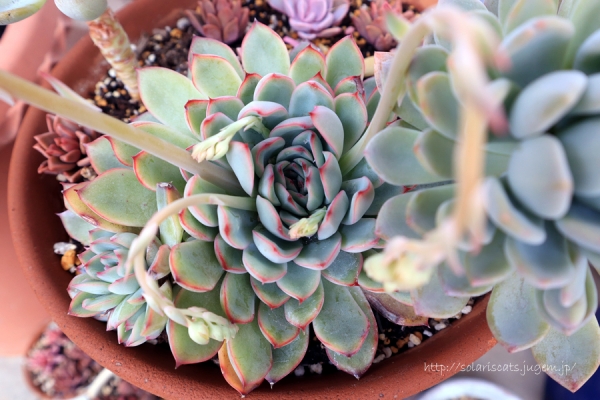 3/27に撮影。 桜でお花見はちょっと難しい今年の春 多肉植物の花でお花見はいかが? 月美人のこの鮮やかな朱色と黄色い蕊 それをふんわり包むパウダリーなグリーン すっごい好み〜〜 名無しのエケベリアの花も 毎年同じような写真をブログに載せちゃってますが 不思議と撮り飽きないのは 引いて...