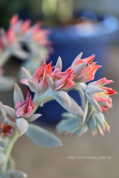 今、うちのベランダでひときわ存在感を放っている多肉… スプレンダーです。にょきにょき花盛り♪ なかなか派手な朱色と黄色の花なので、花火みたいだな〜って思って見てます。 7号のテラコッタ鉢に3株 子株がたくさん出て土が見えないくらいになってたんですが 蒸れで全滅したりしたら悲しいので、風通しを確保するために子株は全部摘んでしまいました。 この3株をでっか...