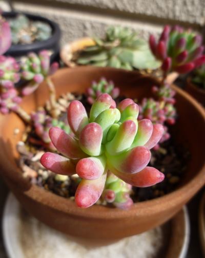 JUGEMテーマ:多肉植物 赤くなったの、どうよ・・って感じ。 これは乙女心でしょうか。 寒さで赤みが増して乙女心らしくなりました。 ちょっと白っぽいし、乙女心でいいと思います。 毎年ここの多肉は寒さで溶けるけれど今年は大丈夫だったようです。 今年の冬は暖かかったようです。 ...