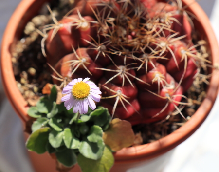 JUGEMテーマ:多肉植物 サボテンの鉢にこぼれ種の花が咲きました。 たぶん、「アルムの空」 かわいい 久しぶりに、また復活。