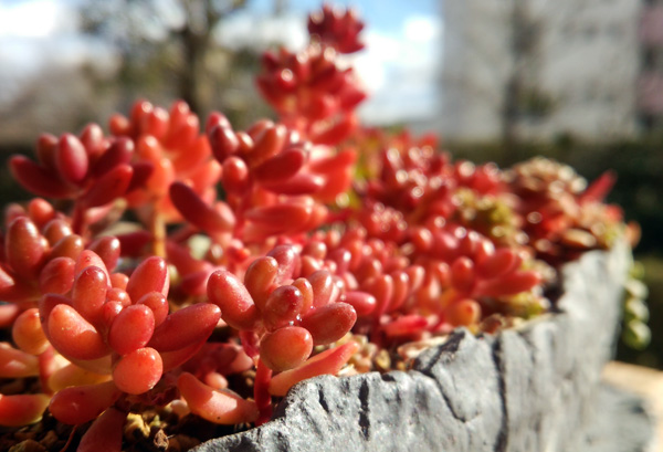JUGEMテーマ:多肉植物 真っ赤なほっぺ。 寒そうですが元気な多肉。 ぷっくりとして、冬に負けませんでした。 しもやけで溶けていません。 何とも荒れた庭です。 霜除けに今年は枯れ枝を切るのを止めました。 多肉の鉢は今年は植え替えなければ駄目ですね。 なんか去年も言っていたような気がし...