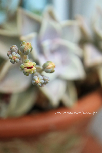 朧月、蕾が割れてきました。朧月の花は初めて見るので嬉しいな うねうねしながら伸びていた名無しエケベリアの茎も、シャキーン☆と立ち上がりました。 これはどうかな?と思っていた星美人も、やっぱり花芽でした。 ここ数日の暖かさでぐんと伸びた気がする。 花芽はないけど、ボーボーに伸びたのを切って植え替えてやったらきゅっとして可愛くなった立田。 →ブサイクだった時...