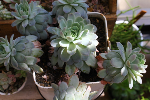 今日の多肉事。 暖かくなって多肉の変化が顕著になってきたら、毎日観察するのが楽しくて楽しくて♪ でも、ちゃんと時間を決めて多肉遊びをしています。 子供のゲームと同じ感じかな? 本当はね、時間を忘れてずーっと戯れていたいんだけどね。 で、今日は数日前にUPしたこれ↓ 名前のわからないエケベリア。 親株から子株を切り離しました。 すっきり。 お母さん、まだまだ子だくさんで、首のあたりからぐるりと子供達が顔...