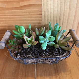 JUGEMテーマ:多肉植物 この間の寄せ植えが気に入らなくて さっそく解体しました! さて、次にカゴにも植えてみたいなぁという 衝動にかられまして 植えてみましたo(*・∀・) こちらはダイソーで買ったカゴ☆ なんか、挿しただけ…ですよね。 これもあまりしっくりきません。笑 まぁかわいいんだけど… ちなみに、土がこぼれないように 敷いたのはヤシファイバーです! 結局これも解体するんですけどね… 今ならもう少しかわいく 寄せ植えできる気がします(・∀...