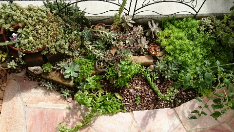 JUGEMテーマ:多肉植物 玄関前スペース。 写真に写るのはほとんどが多肉植物です。(右端トマト以外) 一応ひと月ほど前、伸びすぎた「グランドカバー向けセダム」を剪定しました。(画像左寄りのミニチュアのドア周辺) そのせいで陰に隠れて徒長してい「ブルーパール」を仕立て直したんですが(ドア右のレンガ手前) (↑当時の写真がない…) 現在また気になるのが、この3つの丸。 長く伸びるもの分かりますか? これ、多肉の花芽なんです...
