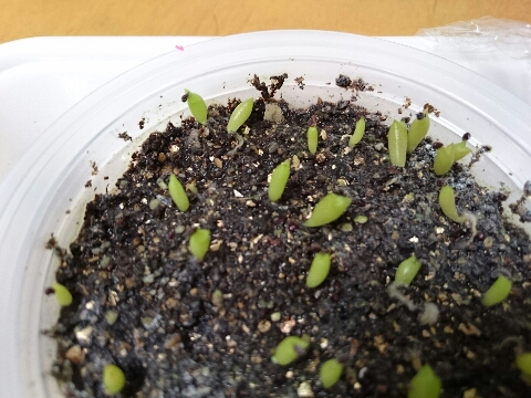 JUGEMテーマ:多肉植物 5月5日の種まきから、 長らく報告を忘れていたのでまとめてします! 前回の記事からどうぞ サボテンの芽が出ました(種から金鯱?) 20日目(5/25) 芽が出揃いました。 ネコミミのようで可愛いですね 26日目(5/31) 耳の間に白い点ができ始めました。 35日目(6/9) 白い点の正体は、針! 点が増えて、産毛のような針が生えてきてようやくサボテ...