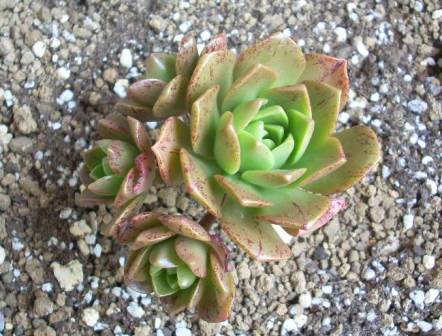 JUGEMテーマ:多肉植物 伊達法師 今年の大寒波でダメにしてしまった伊達法師。 やっと手に入れましたよ! 今回のは肉厚で葉に茶色のまだら模様もあります。 大きさは全体が6cmほどの小さな苗です。 子株が3つついてます。 今度こそ大株に育ててみせます! プリドニス この子も新入りさん。 道の駅で購入のエケベリア・プリドニス。 調べてみると花うららのこと? 花うららの原種と書いてあったり? よく分からないです。 これ大きめのが4頭ついてて200円でした〜♪ これがはずした...