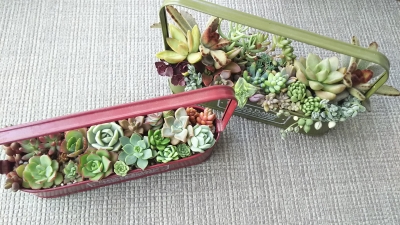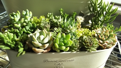 3月末に作っていた多肉寄せ植えです。 ほぼ、楽天の農園直送的なお店ハニーミントの、おまかせセット入ってた多肉で作った寄せ植えです。 ここのお店の子はすっごい元気!!ある意味ワイルド?(笑) 負担をかけて姿や色を出したい種類の多肉は本当に全く想像と違う残念な子が送られてきますが、グリネやセダム系は元気でびろんびろん伸びてくれて楽しい! 緑寄せ 4月10日 5月7日 この子はお嫁に行ったので送られてきた画像です。 1ヶ月で結構変わってる!春萌え的な子は別人のようだしセンペルちゃんも変身してますね...