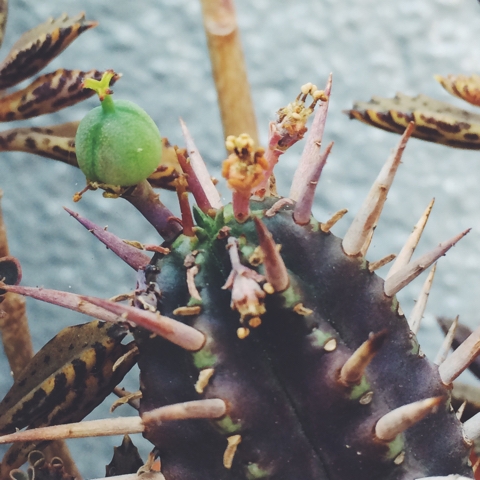 先日載せたパンクなトゲトゲのフェロックスですが、咲いていた花は萎れて別な蕾が出てきました。 不気味なトゲに似つかわしくない、かわいい蕾でした。 GALLON http://www.gallon.jp (ガロン / 革製品、革小物、真鍮アクセサリー、レザーグッズの通信販売専門店) ホームページ : http://www.gallon.jp 通販サイト : http://shop.gallon.jp ブログ : http://blog.gallon.jp facebookページ : https://www.facebook.com/gallon966f キーワード:ユーフォルビア、金碧塔、勇猛閣、紅キ...