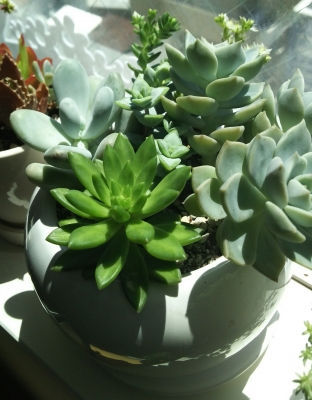 特筆することはないのだけれど、寄せ植え紹介。 珍しく800円もする鉢に植えたのだけど、鉢が丸くてサイドに土が入らずに苦労しましたよー😢 白牡丹×3 伸びちゃってます💦 サンライズマム 月美人 愛姫 セダムの何かが後ろにいます。 もう少しバランスやらなんやら、なんとかなりそうな鉢植えですねー😢それぞれの子は葉も綺麗でかわいいのに…。 来年の春には素敵な寄せ植えに仕立て直したい! JUGEMテーマ:多肉植物