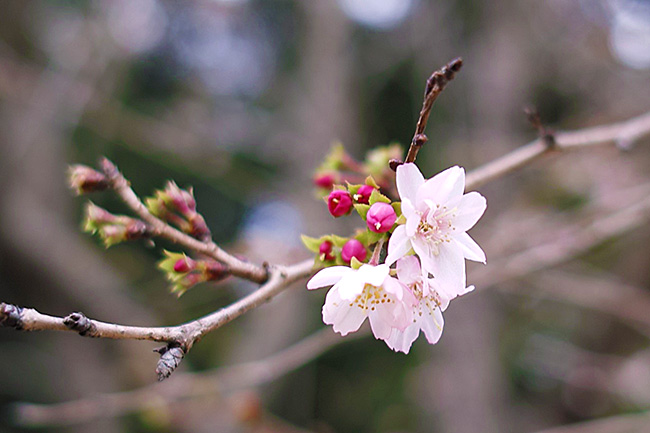 JUGEMテーマ:桜 上野公園で桜の開花を確認した。 [十月桜(ジュウガツザクラ)]という種類の桜である。そう書かれたプレートがついていた。 十月頃に咲くから十月桜というのだろうか? 本日は12月15日である。「いくらなんでも離れ過ぎてはいないだろうか」とも思ったが、旧暦なら10月28日であった。いちおう10月の内ではある。