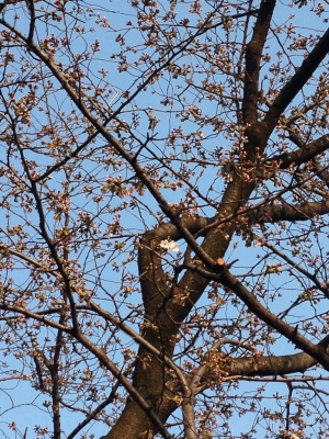 JUGEMテーマ:桜 こんばんは。アトです。 春ですね〜。 暖かくなってきました。 3日ほど前に散歩したときは 一輪だった桜が 今日は こんな感じに咲いていました。 五分咲きくらいかな??? もう屋台も出ちゃってます。 今週末くらい花見が出来そうです