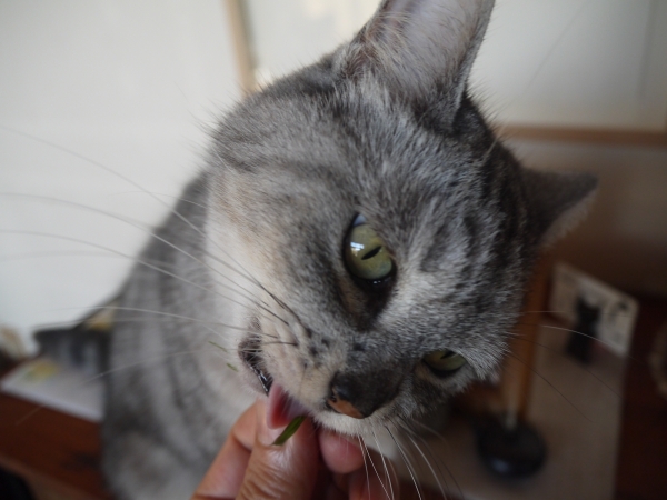 庭の草がとぼしくなってきました。 朝、新聞を取りに出て戻ると、 玄関土間で、灰色しましまがキラッキラ顔で待っている。 手ぶらでは通してもらえないので、ふたたび庭に出るけれど、 もう2度ばかり霜も降りた庭には、緑が少ない。 かろうじて見つけた、ひょろひょろのイネ科の何かを進呈。 そろそろMUJIの猫草栽培キットの出番ですな。 * ...