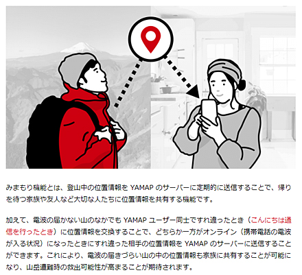JUGEMテーマ:山登り 登山地図アプリのYAMAPに「みまもり」機能がリリースされました。 なかなか今までにのアプリには無い画期的な機能だと思います。 「みまもり」機能とは自分の山登り中の自分の位置情報を家族などに送信できる機能です。 この機能のいいところは自分のスマホの電波が入らない状況でもすれ違った人や同行メンバーのうちの誰かの電波が入れば送ってもらえるところです。 例えば自分はソフトバンクなのですが九重ですら電波が入りません。 その場...