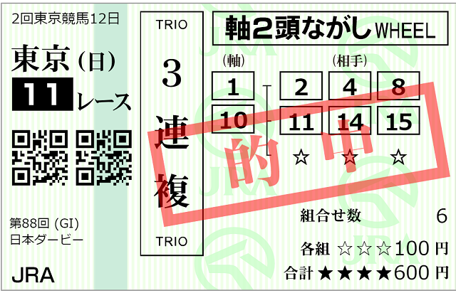 JUGEMテーマ:雲蒸竜変 先週の日本ダービーを優勝したのは、4番人気?シャフリヤール、2着1番人気?エフフォーリア 3着9番人気?ステラヴェローチェでした。 優勝したシャフリヤールに騎乗していた福永ジョッキーは昨年のコントレイルに続いての連覇です! 私の馬券ですが、3連複的中。(^^) 4−1−9人気で決まったのですが万馬券にならず・・・ 先々週のオークスは3−2−16人気で3着に16番人気が入り大荒れとなりましたが ...