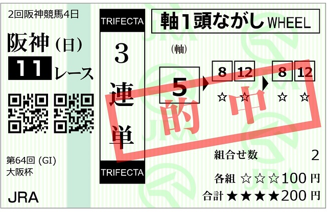 JUGEMテーマ:雲蒸竜変 先週の古馬G?大阪杯ですが、優勝はM.デムーロ騎乗の2番人気牝馬の ?ラッキーライラックでした! そして2着も4番人気牝馬の?クロノジェネシスと高松宮記念と同じく牝馬の ワンツー決着となりました。 3着は1番人気?ダノンキングリーで、私の馬券ですが見事3連単的中。(^_^) 今年のG?初的中となりました! しかし、競馬も新型コロナの感染防止のため、2月29日から無観客で開催されて...
