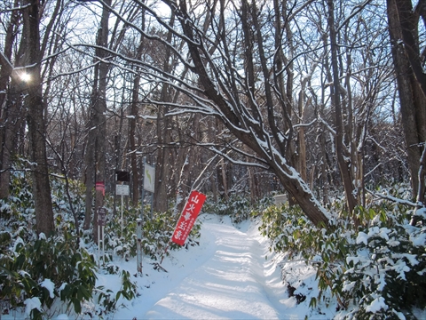 JUGEMテーマ:北海道の登山 今日も寝坊をして起きると11時過ぎていた・・・ 夏用と冬用のトレランシューズを持って「慈啓会病院前コース」の駐車場へ向かった。 下山をしてきた同僚に登山道の状況を教えてもらった。 駐車場から出ていく同僚を見送り、冬用のトレランシューズを履いて、12時20分 登山口を出発した。 先週と同じ位の気温(車の外気温度計 −2〜3℃)だったけれど、風もなく日差しもは強かったので暖かった。 お地蔵さんに雪が積もっていたので、除けながら...