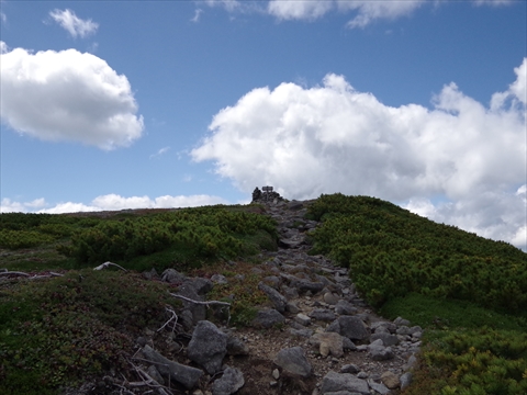 JUGEMテーマ:北海道の登山 眺望の良い山頂でしばらく景色を眺めながら休憩をした。 午後から雷雨の可能性があるので、名残惜しいけれど『北海岳』に戻ることにした。 12時5分 白雲岳分岐を通過した。 前方に見える『北海岳』へ向かって、早足で進んだ。 12時35分 『北海岳』の山頂へ到着した。 『黒岳』に戻る選択肢もあったけれど、もう少し天気は持ちそうなので『御鉢平』を一周することにした。 水分を補給...