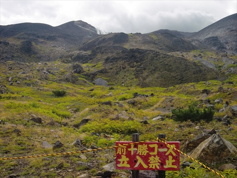 JUGEMテーマ:北海道の登山 風が強い予報だったけど、雨は降らなそうなので、休暇を取って登山をすることにした。 5時に起きて外を見ると雨が降っていたので、雨が止むのを待って、6時に住宅を出発した。 行き先は迷ったけれど、コースを選ぶことが出来る『十勝岳』周辺を登山することにした。 防災シェルター入口にある登山届に記入を済ませて、登山を開始した。 7時 「望岳台」の石碑を通過した。 曇り空だったけれど、気温は高く、心地の良い風が吹いていた。 気...