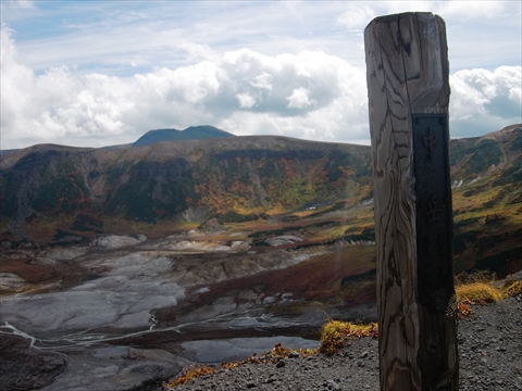 JUGEMテーマ:北海道の登山 11時に『中岳』を通過したけれど、右手に見える「裾合平」の紅葉は綺麗だった。 11時19分 「中岳分岐」に到着した。 『旭岳』を登って、下山する予定だったけれど、「中岳温泉」から「姿見駅」へ向かうことにした。 前方に色付いた「裾合平」、右手に『比布岳』を眺めながら進んだ。 しばらく歩くと「ピウケナイ沢」が見えてきた。 急斜面を下って、11時38分 「中岳温泉」に到着した...